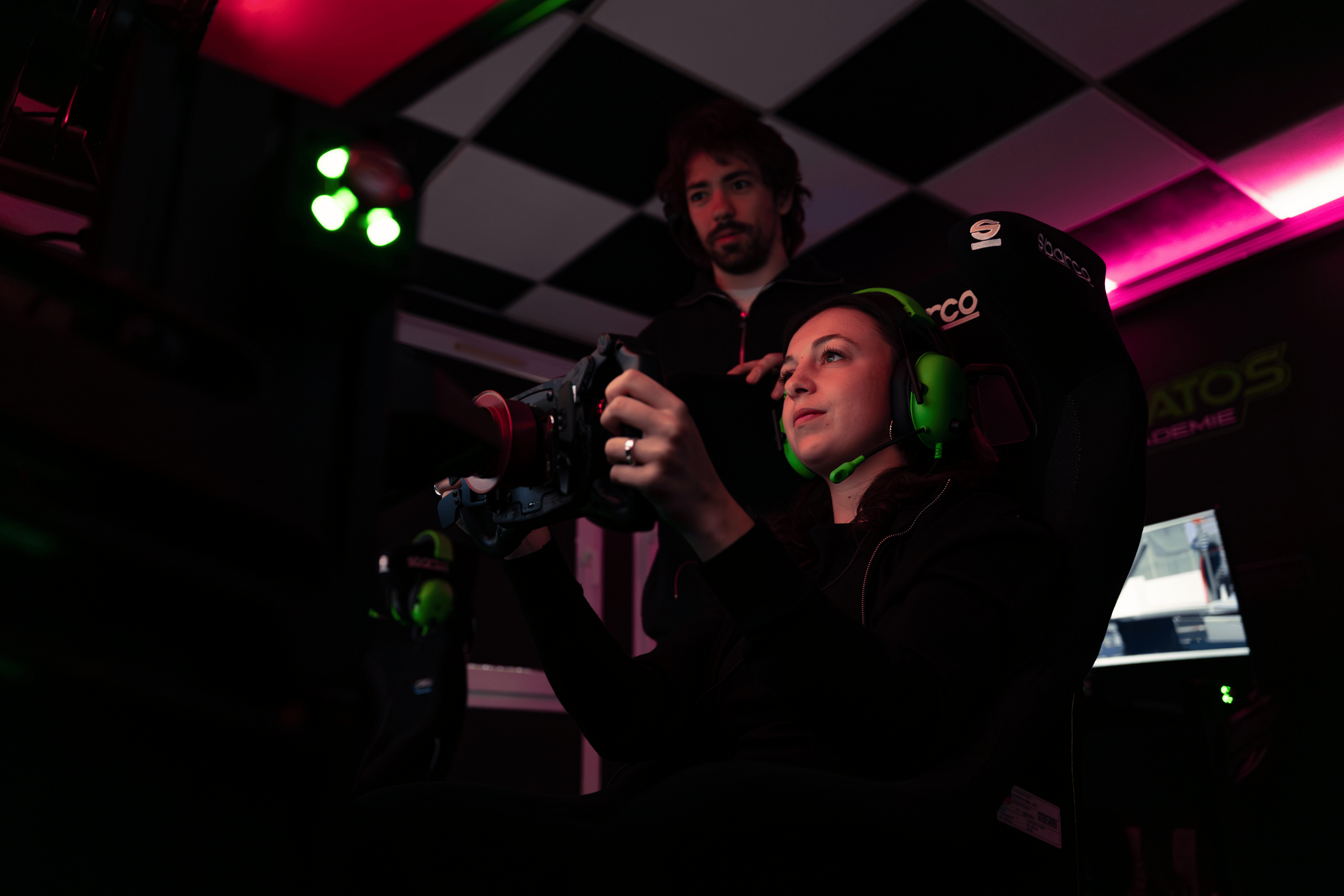 Ne vous y méprenez pas : Stratos Académie est bien plus qu'une salle d'arcade. Installé au 145 rue du Président Roosevelt, le centre dispose de plusieurs simulateurs professionnels. C'est l'un des premiers centres de l'Ouest parisien à proposer une véritable pédagogie du pilotage sur simulateurs pro. Chaque session est encadrée par un chef de salle, chaque chrono est analysé, chaque client repart avec un retour personnalisé et une télémétrie complète.