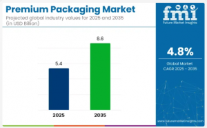 NEWARK, DE, UNITED STATES, August 5, 2025 /EINPresswire.com/ -- The global premium packaging market is on a robust growth trajectory, with its value projected to grow from an estimated USD 5.4 billion in 2025 to USD 8.6 billion by 2035. This expansion, at a Compound Annual Growth Rate (CAGR) of 4.8%, is being fueled by an increasing consumer preference for high-quality, distinctive packaging that significantly enhances product value across luxury goods, cosmetics, food, beverages, and pharmaceuticals.