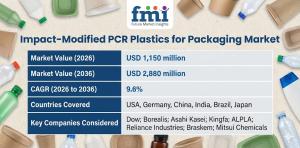 NEWARK, DE, UNITED STATES, February 16, 2026 /EINPresswire.com/ -- The global impact-modified PCR plastics for packaging market is estimated at USD 1,150 million in 2026 and is projected to expand to USD 2,880 million by 2036, registering a CAGR of 9.6% over the forecast period. The market’s momentum reflects a clear shift from recycled-content compliance toward performance-driven material substitution in packaging applications. As converters and brand owners prioritize durability, process stability, and lifecycle performance economics, engineered PCR materials are becoming central to packaging redesign strategies.